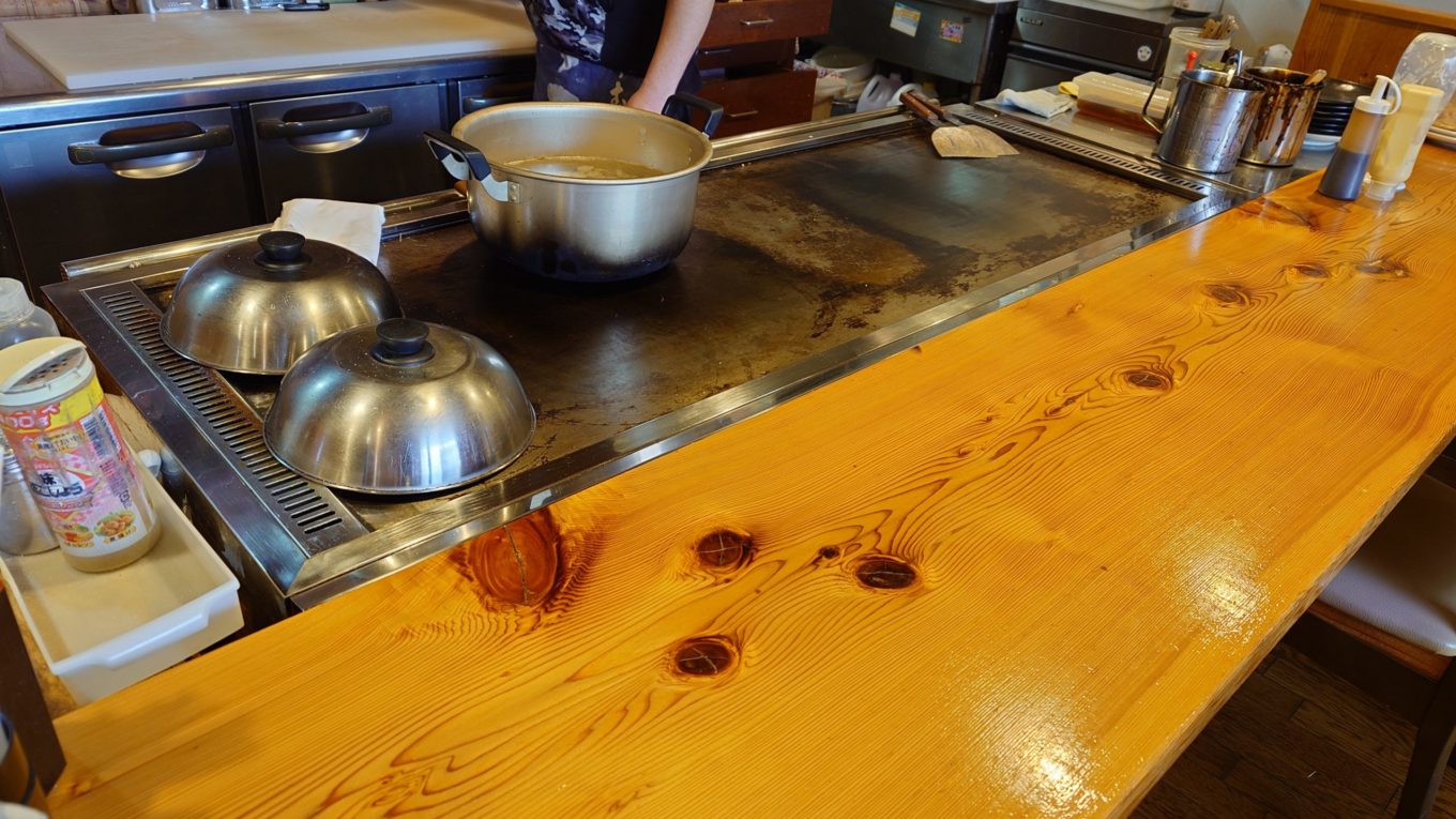 本当は大将が鉄板で調理している様子も撮影したかったのですが、カウンター席には他のお客様がいらっしゃったため、今回は写真を控えました。