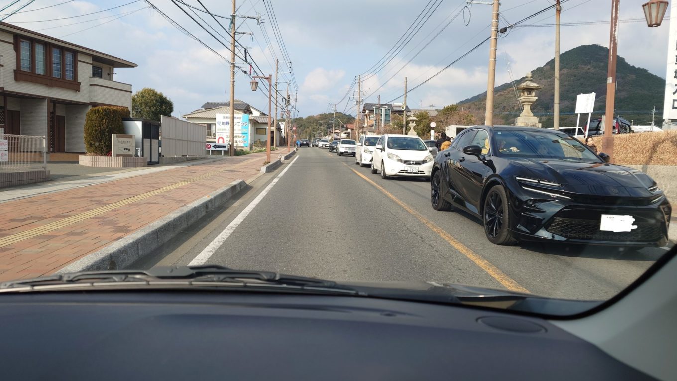 2026年2月1日は、節分に関する何らかのイベントの影響で、福間駅から宮地嶽神社の間はかなりの渋滞が発生していました。