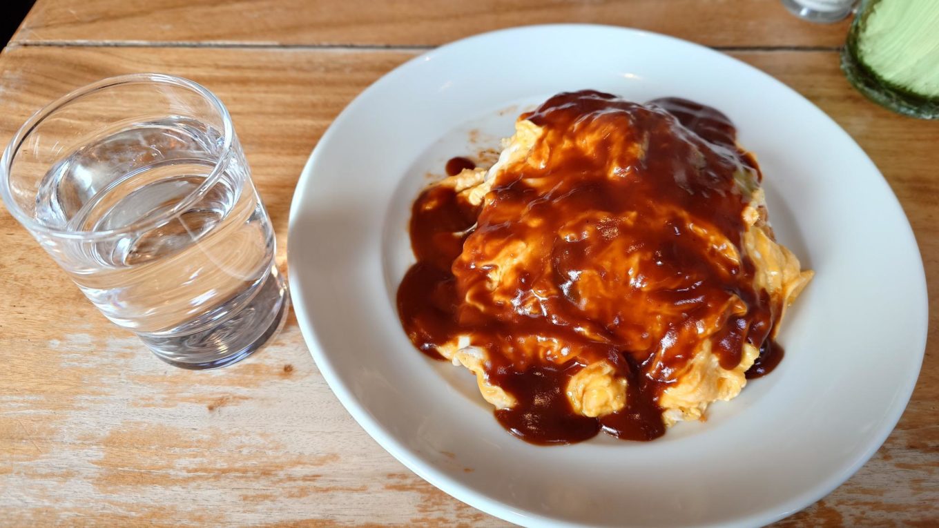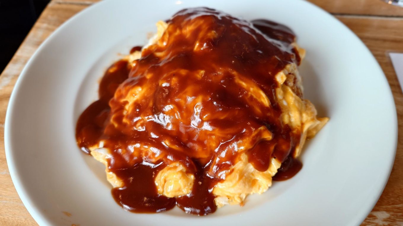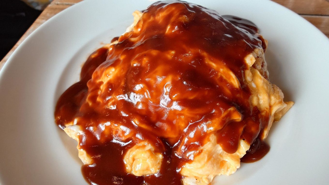 ふわふわのたまごに、たっぷりとかかったデミグラスソース。